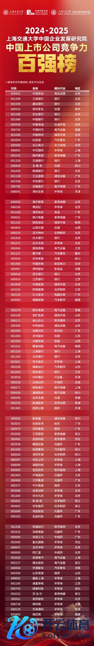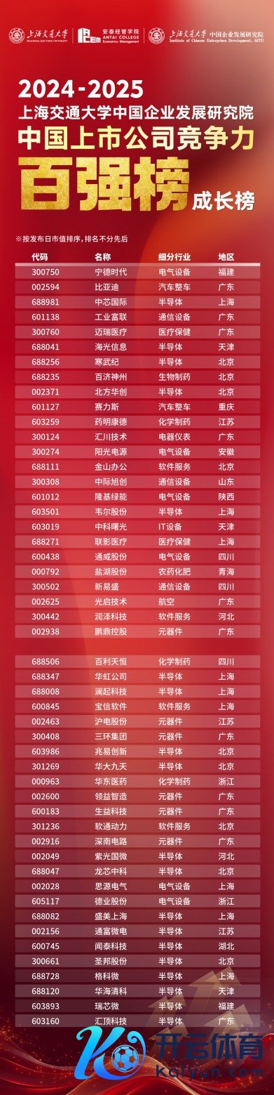 第7版“2024-2025中国上市公司竞争力百强榜”日前在上海交通大学揭晓,榜单包含总榜,并分列两榜,分手是竞争力100的成长榜(50家)和肃穆榜(50家)。论前十强企业,“金融”和“芯片”成为最大守旧,其中银行业企业占总榜的4席,半导体行业的企业则占成长榜的4席。
