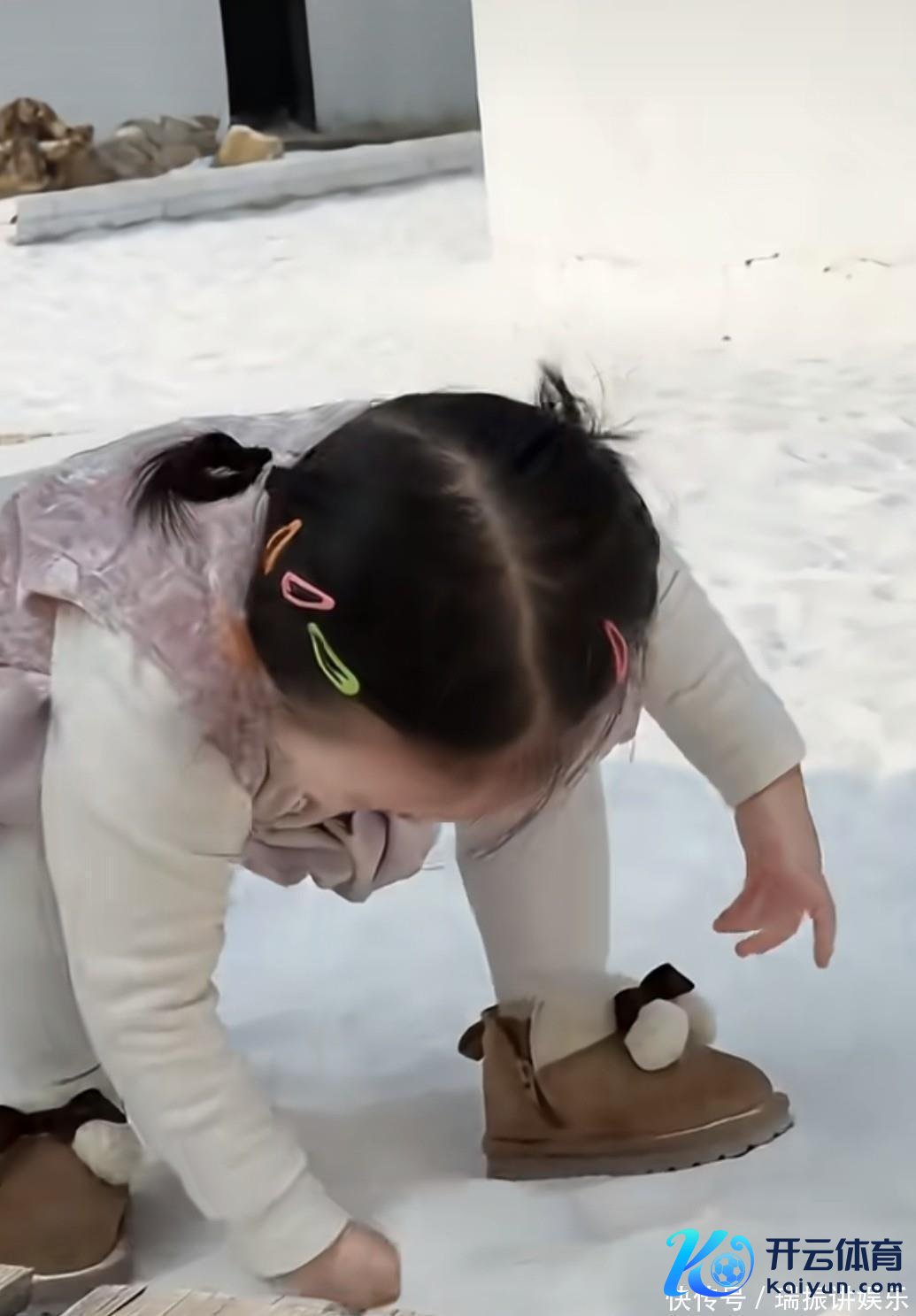 闪闪玩开了之后,就蹲在雪地里用小手扒拉积雪,还试着把雪握成小团子,奈何小手太小,雪刚握成型就散了,她也不用极,扒拉着雪再试一次,小脸上沾了点雪沫子,像个小花猫,我方还咯咯咯笑个不断。
