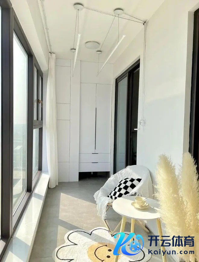 阳台另一侧顶面装了可升降晾衣杆,晾衣着肤浅,衣物实时收起,也抖擞阳台好意思不雅需求。