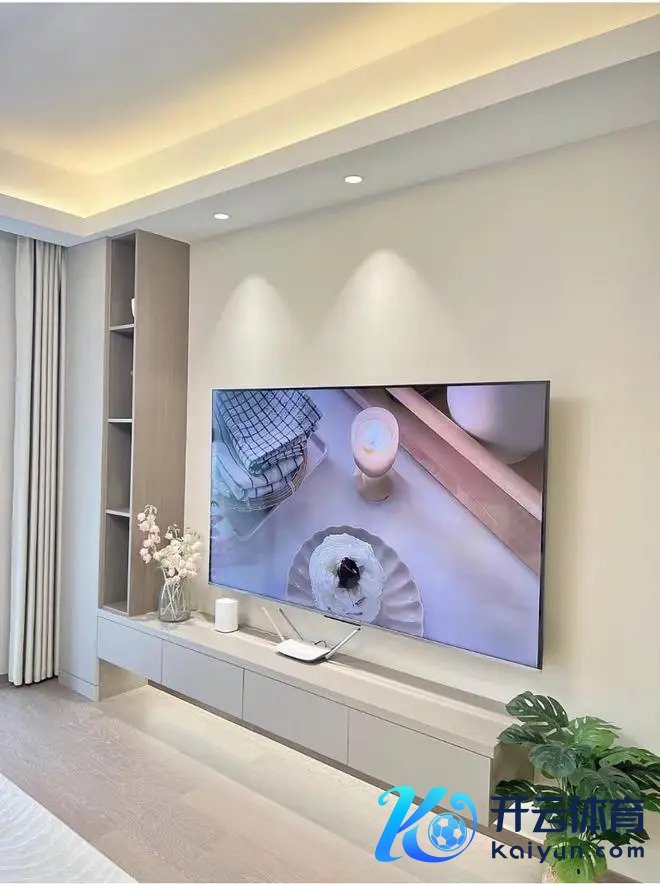 不作念复杂电视配景墙,因客厅开间3.6米,空间有限,作念了纰漏的L型悬空电视柜,收纳空间足,显空间大。