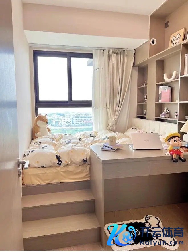 诈欺飘窗加宽作念了1.5m的榻榻米,搭配软乎乎的床头靠垫,有了双东谈主床还检朴空间,榻榻米存四季被褥绰绰多余。